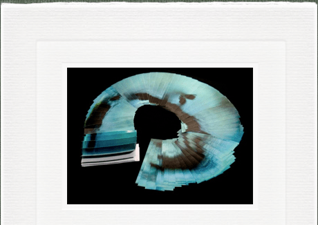 The upper tier of digital frames presents a series of color permutations on an ocean wave impregnated by oil from the BP spill– giving us an opportunity to be fascinated and disgusted-both by what human beings can do to the vast, beautiful and seemingly impenetrable ocean.